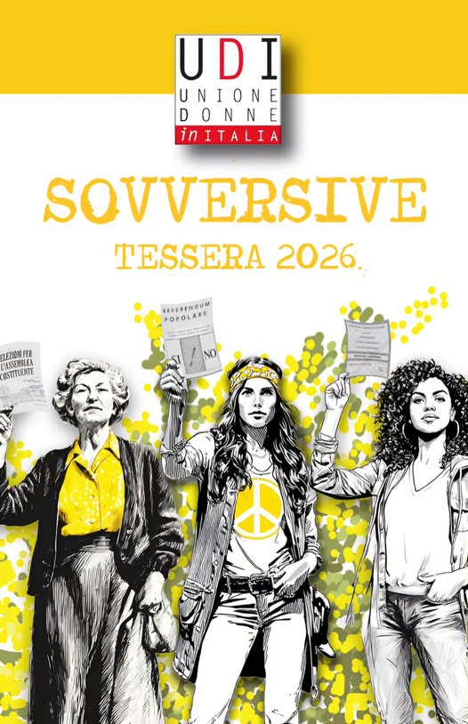 - con un bonifico bancario (quota minima €25,00) intestato a UDI - Unione Donne in Italia con IBAN IT34 C056 9603 2270 0000 3145 X65